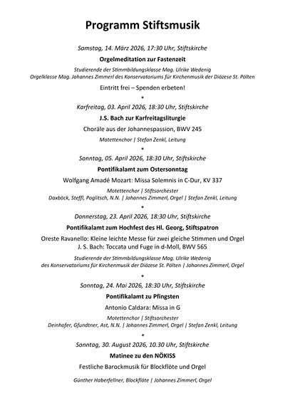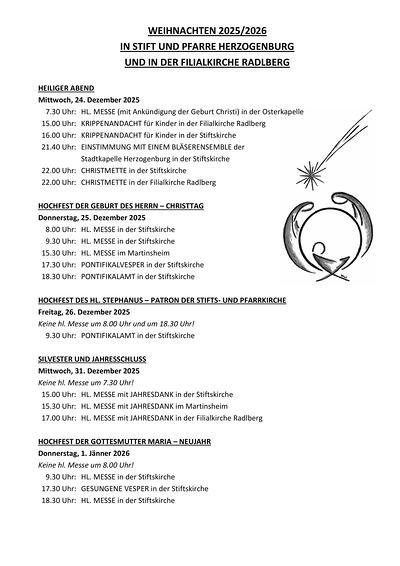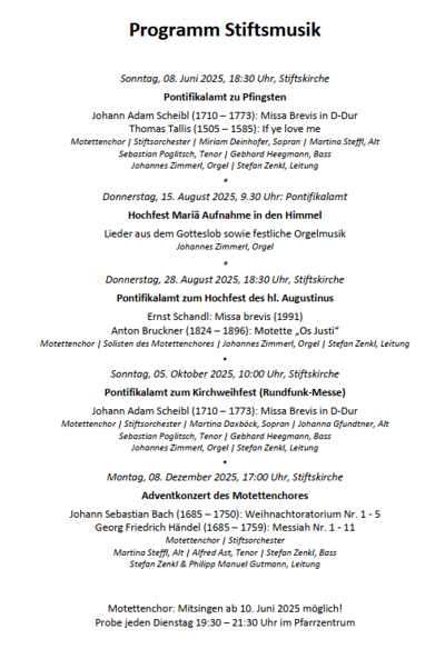 Stiftskirche Montag-Samstag: 7.30 Uhr Sonntag: 8.00 Uhr, 9.30 Uhr und 18.30 Uhr