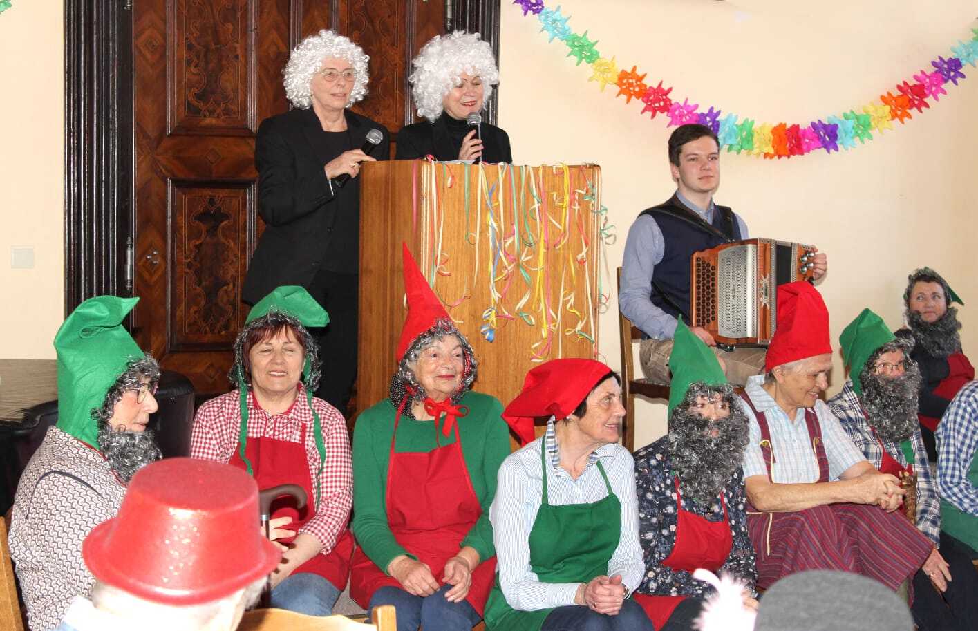 Lustige Verkleidungen waren im ganzen Saal zu sehen und Renate Dockner und Anneliese Roßmanith unterhielten das Publikum mit einem Abwechslungsreichen Programm. Zum Abschluss gab es wie immer ein gemütliches Beisammensein, bei dem auch die Faschingskrapfen nicht fehlen durften.