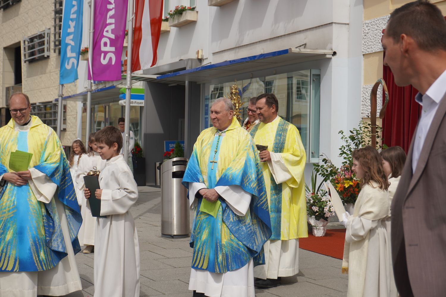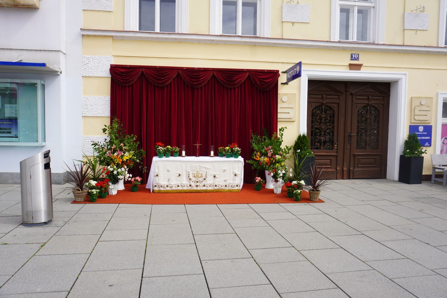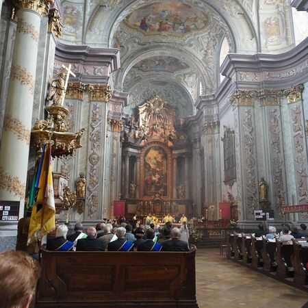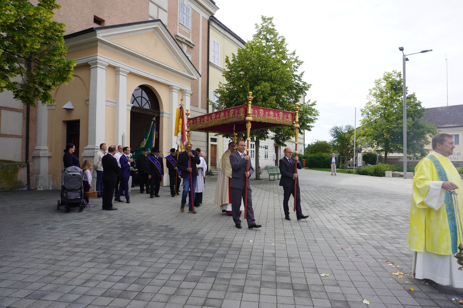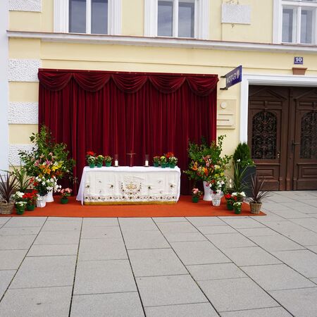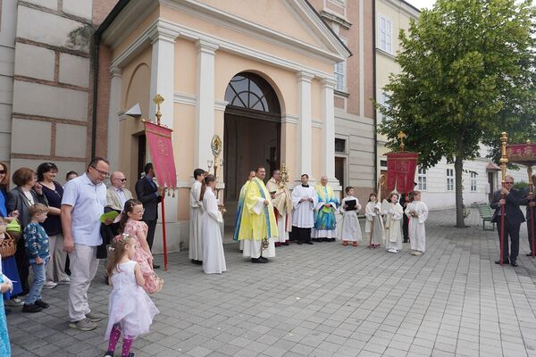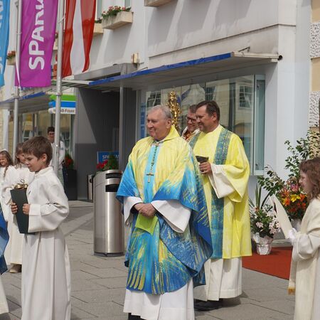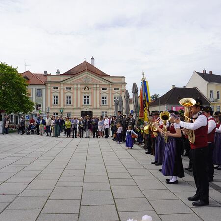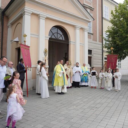 Bei Sonnenschein und sommerlichen Temperaturen konnten wir auch heuer wieder unseren Glauben in die Straßen tragen und nach dem Pontifikalamt in der Stiftskirche beim Altar am Rathausplatz für unsere Stadt und unser Land beten. Im Anschluss gab es beim Pfarrfrühschoppen die Möglichkeit zur Begegnung bei Bier und Würstel.