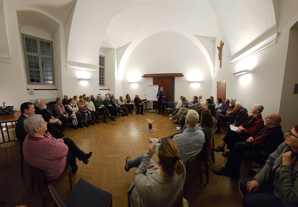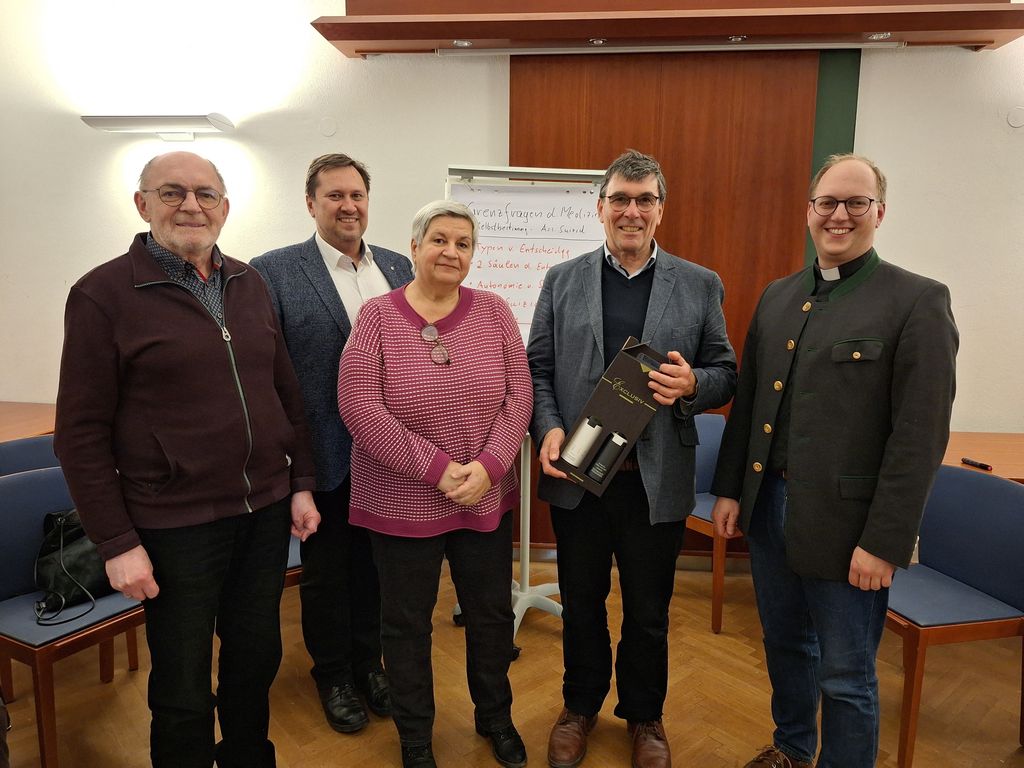 Der Großteil des Abends widmete sich schließlich dem assistierten Suizid. Nach einer geschichtlichen Einordnung und Darstellung der gegenwärtigen rechtlichen Lage entspann sich rasch eine Diskussion über Motive, unterschiedliche Sichtweisen, individuelle und gesamtgesellschaftliche Folgefragen sowie persönliche Erlebnisse. Etliche durchaus auch sehr persönliche Erfahrungsberichte der Teilnehmerinnen und Teilnehmer rundeten den Abend ab und fanden bei der anschließenden Bewirtung mit Wein, Saft und Brot noch ihre Fortsetzung.