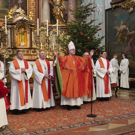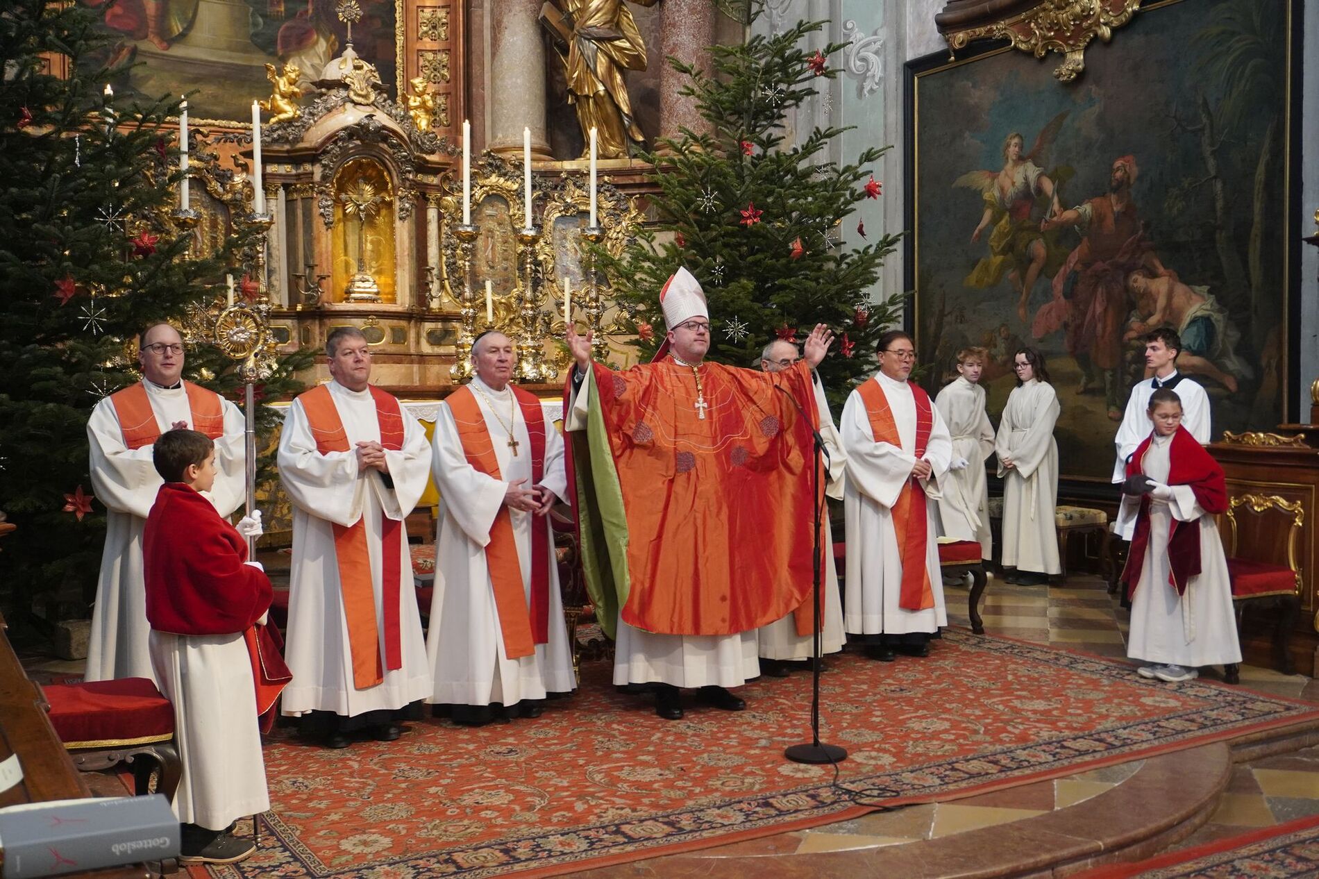 Am Christtag gestaltete der Singkreis unter der Leitung von Birgit Altmann den Familiengottesdienst und der Motettenchor mit Stiftsorganist Mag. Johannes Zimmerl das Pontifikalamt am Abend mit der „Missa brevis in G-Dur“ (KV 140) von Wolfgang Amadeus Mozart. Das nächste Fest folgte aber bereits am nächsten Tag, als wir den Pfarrpatron von Herzogenburg, den hl. Stephanus feierten. Wie jedes Jahr wurden dabei auch die Ministranten kurz in den Mittelpunkt gerückt und H. Stephanus konnte zwei neue Ministrantinnen begrüßen.