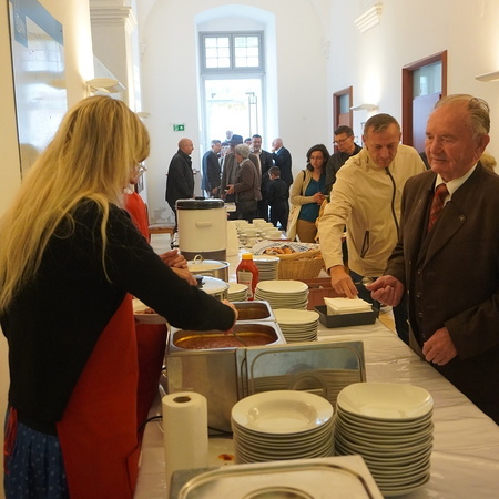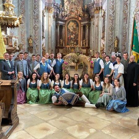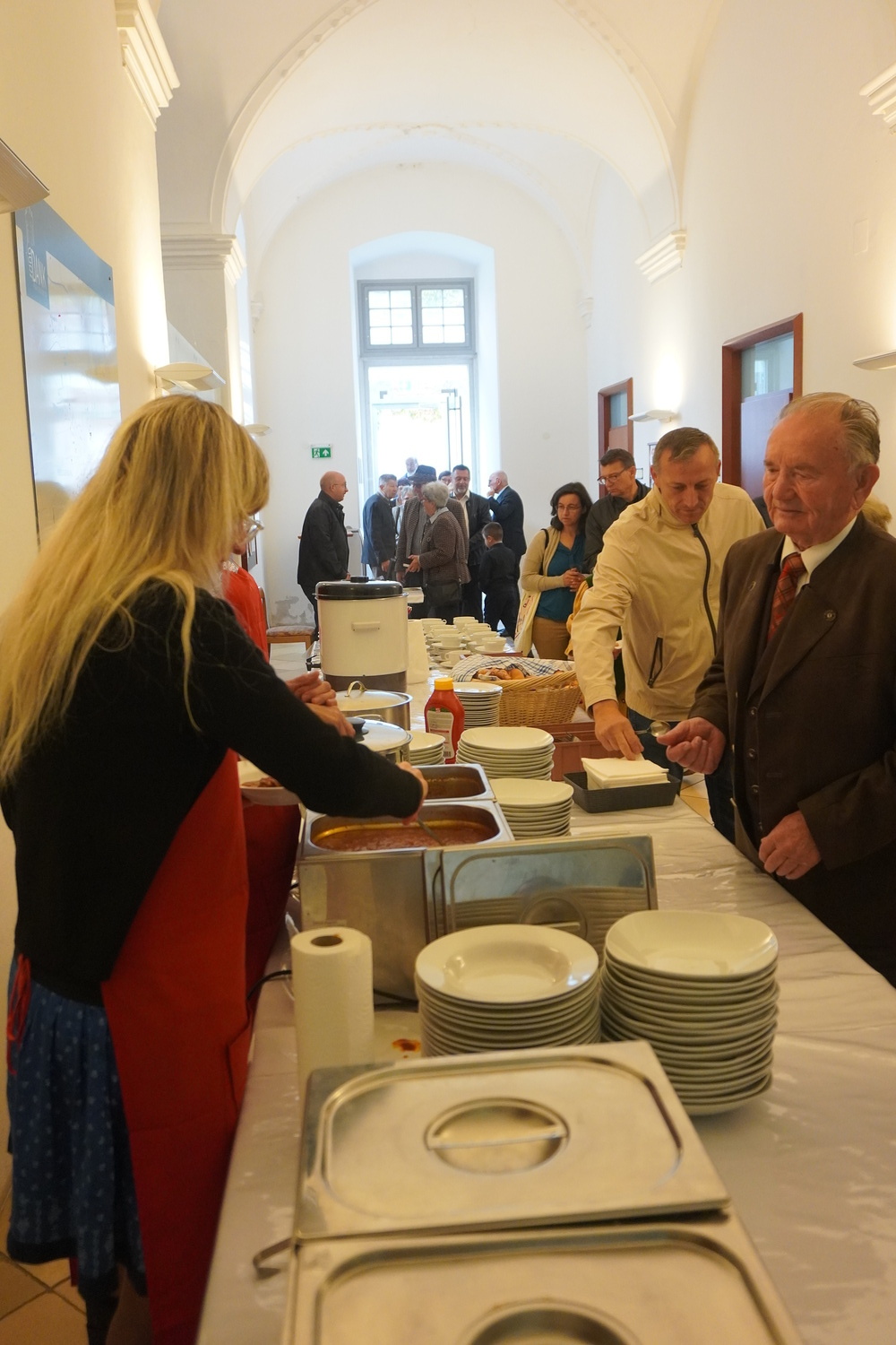 Nach dem Gottesdienst ging das Fest weiter mit einer Vorführung der Volkstanzgruppe der Landjugend Herzogenburg, bei der traditionell auch Brot und Sturm gereicht wurde. Im Anschluss lud die Pfarre zum gemeinsamen Mittagessen ins Pfarrzentrum. Es gab Maissuppe, Rindsgulasch, Würstel und vegetarisches Linsenchili, dazu als Getränke Bier, Wein und Saft sowie im Anschluss Kaffee und Kuchen.