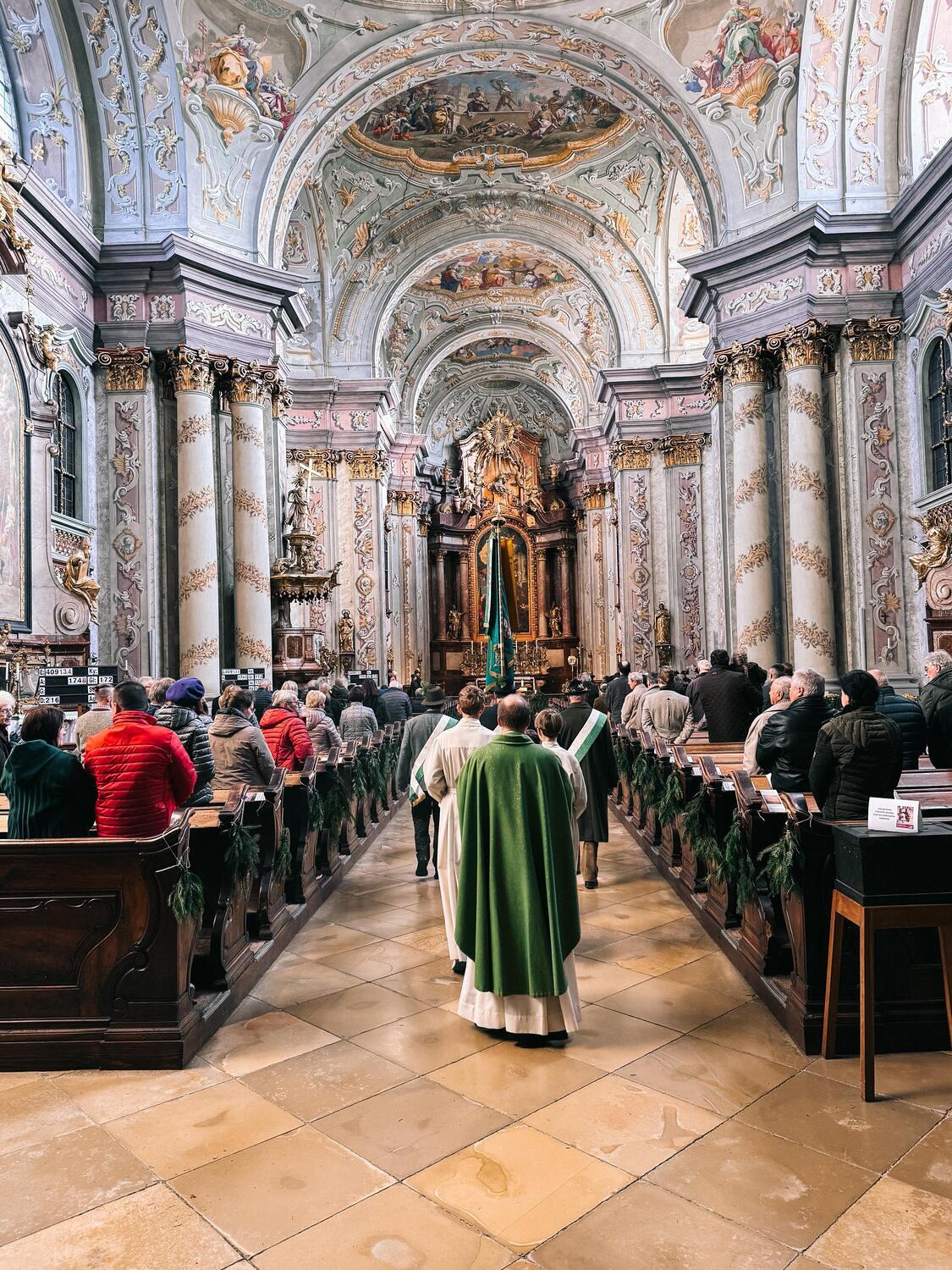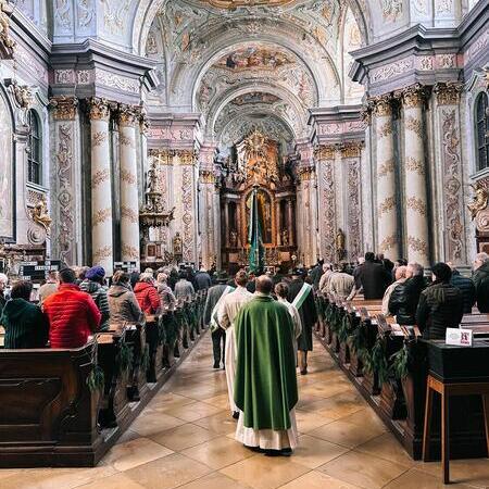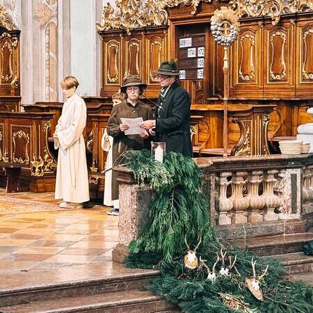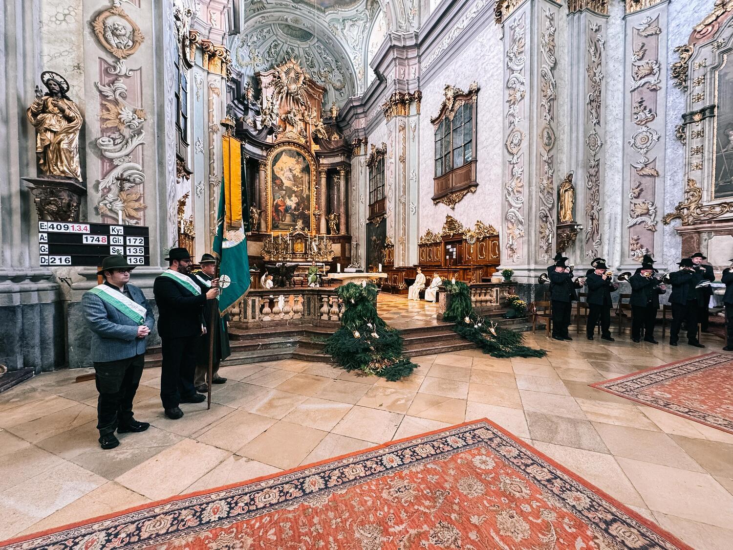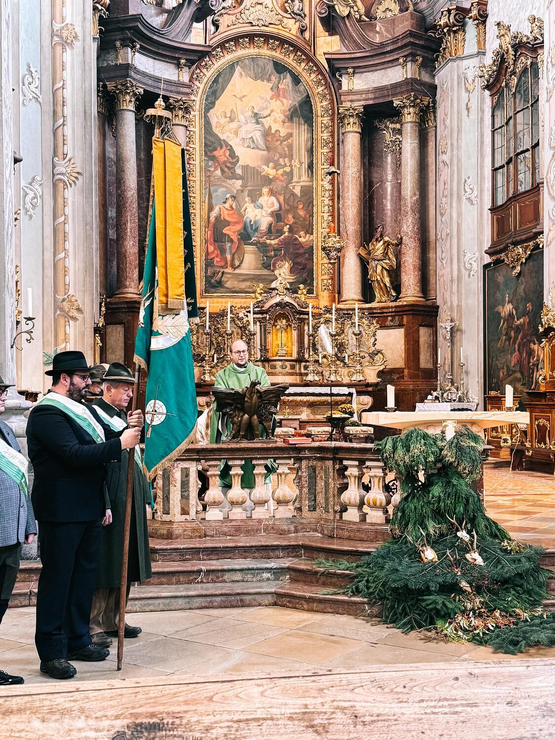 Nach dem feierlichen Einzug mit jagdlichen Klängen, bei dem Pfarrer H. Stephanus von etlichen Ministrantinnen und Ministranten sowie der Fahne der Jagd- und Schützengilde Herzogenburg begleitet wurde, feierten die Jägerinnen und Jäger gemeinsam mit der Herzogenburger Pfarrgemeinde den Sonntagsgottesdienst und gestalteten diesen auch mit.
