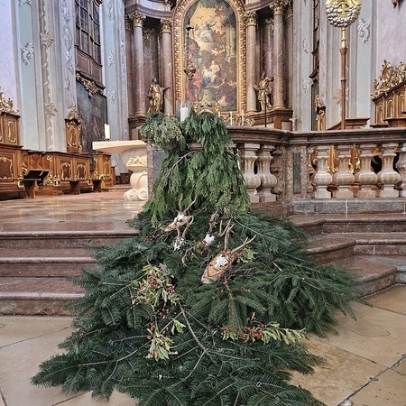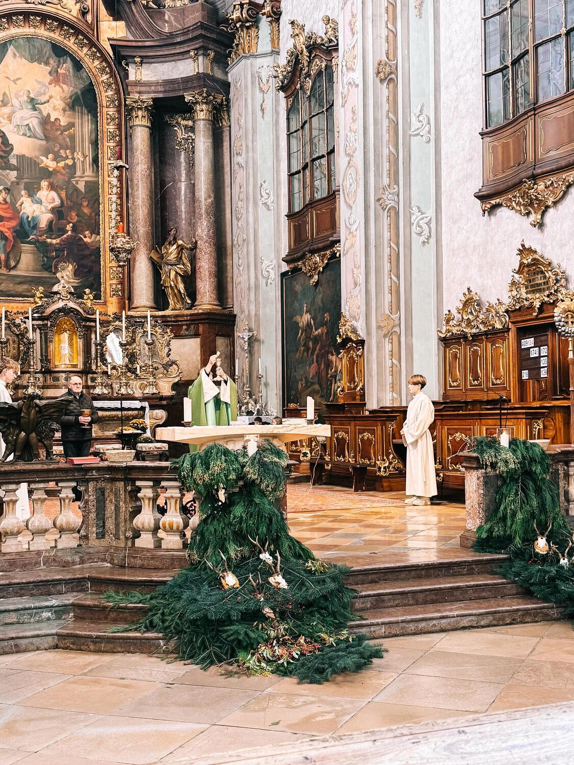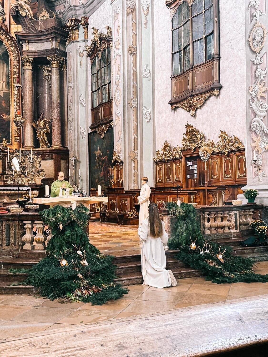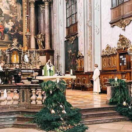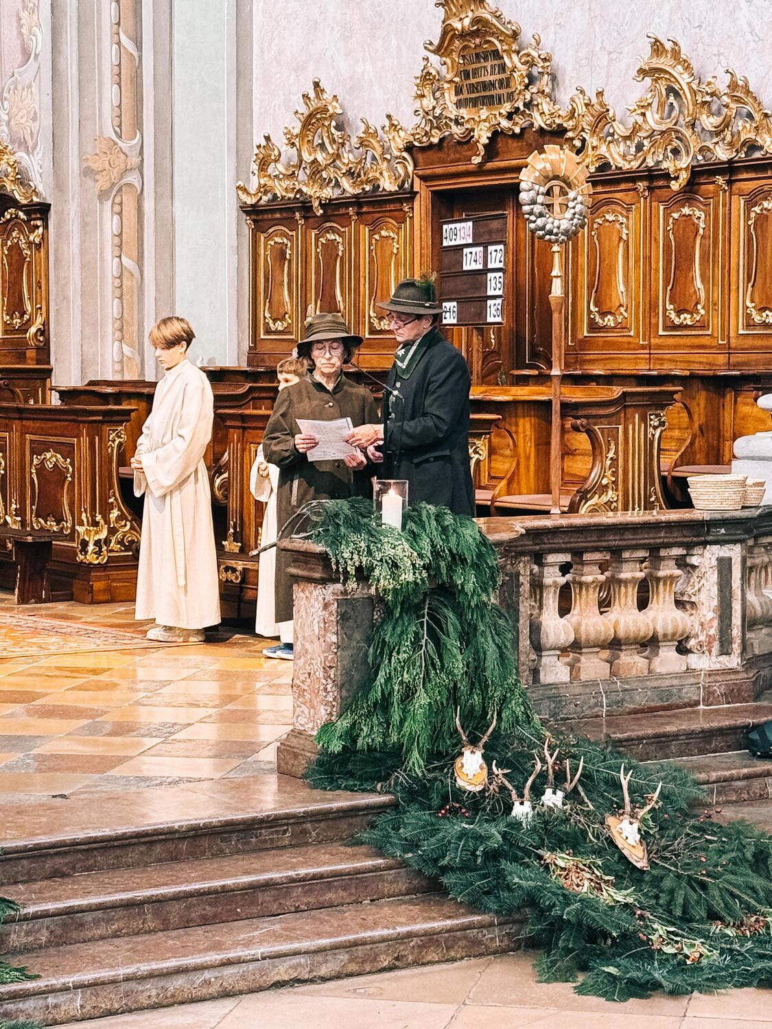 Nach dem feierlichen Einzug mit jagdlichen Klängen, bei dem Pfarrer H. Stephanus von etlichen Ministrantinnen und Ministranten sowie der Fahne der Jagd- und Schützengilde Herzogenburg begleitet wurde, feierten die Jägerinnen und Jäger gemeinsam mit der Herzogenburger Pfarrgemeinde den Sonntagsgottesdienst und gestalteten diesen auch mit.